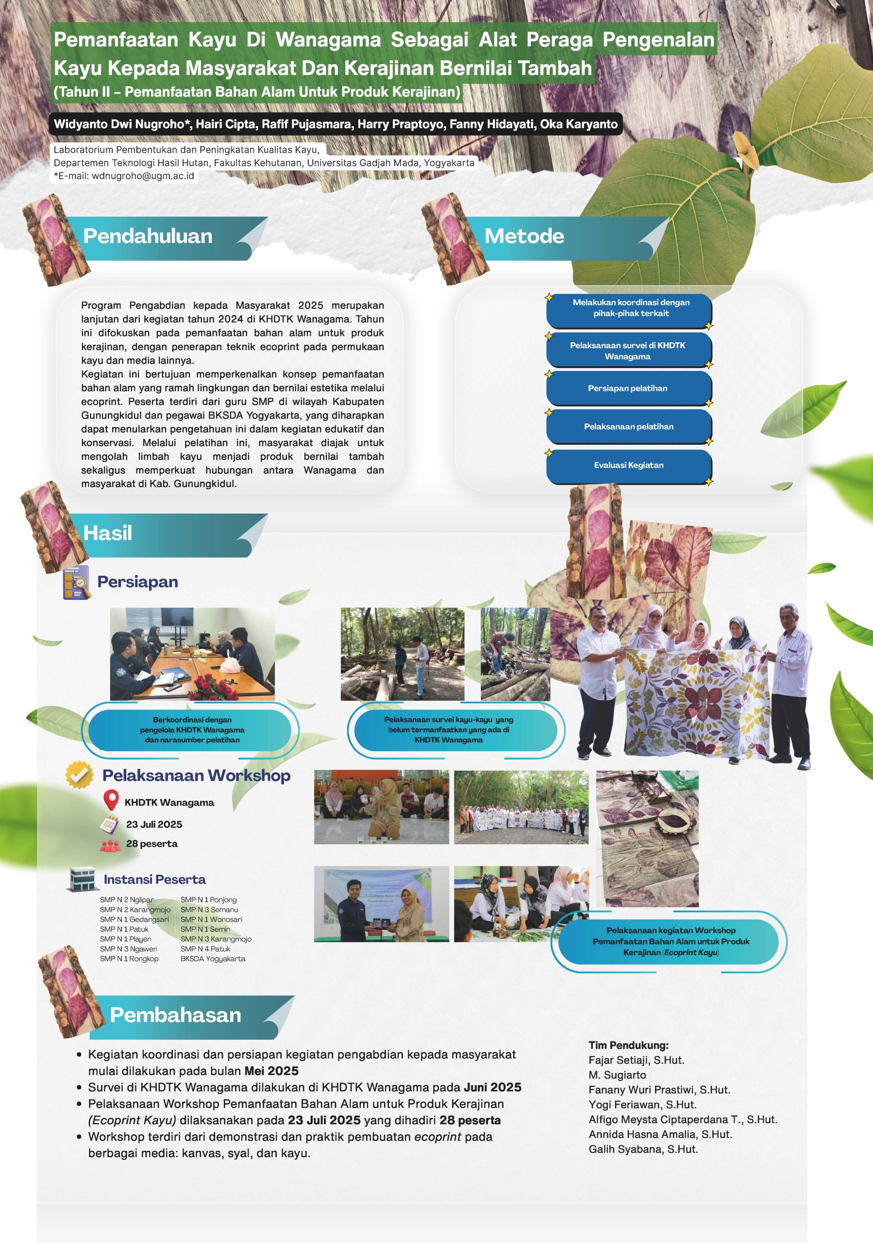 Pemanfaatan Kayu di Wanagama sebagai Alat Peraga Pengenalan Kayu kepada Masyarakat dan Kerajinan Bernilai Tambah Poster PkM FKT Friday, 31 October 2025