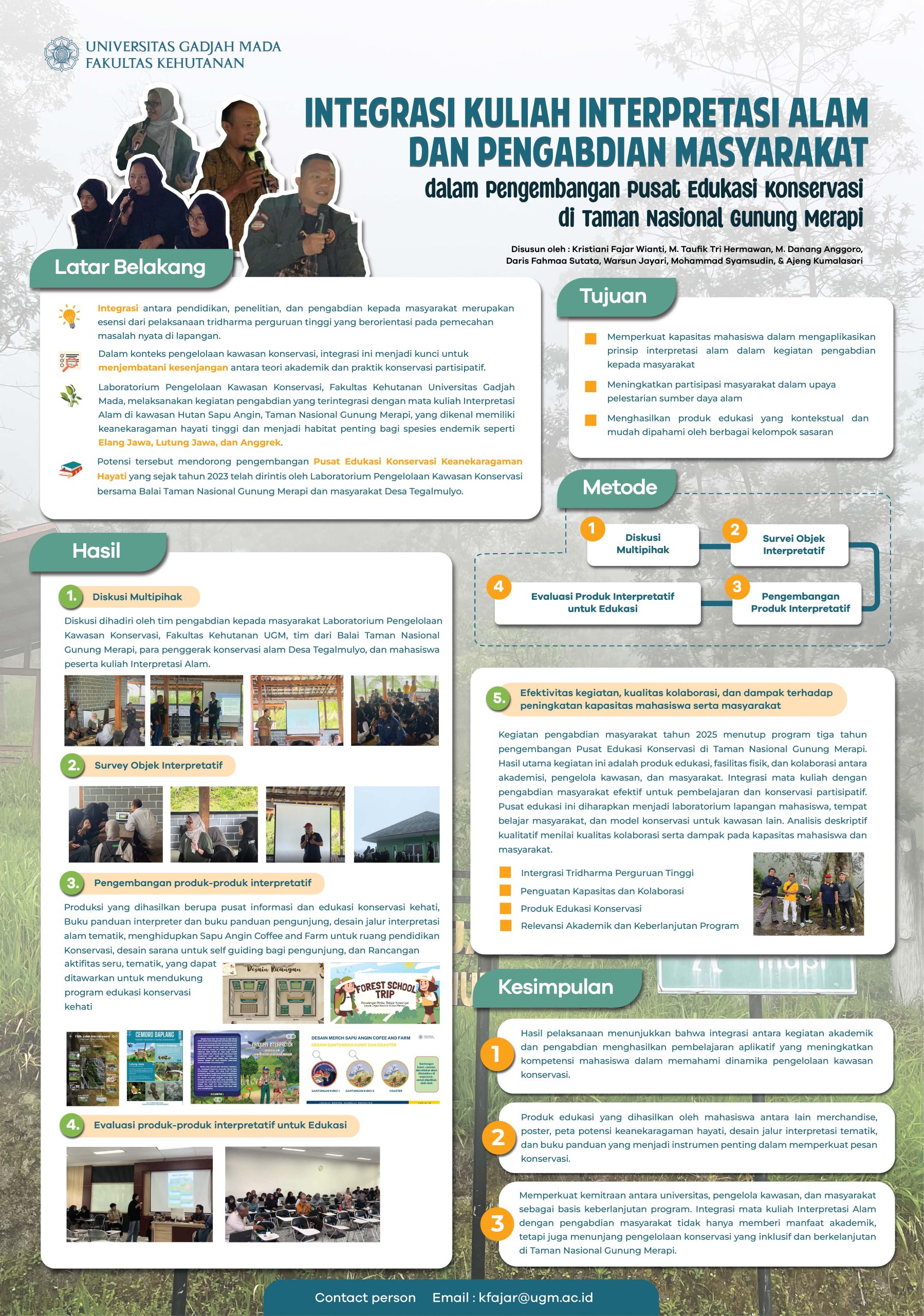 Integrasi Kuliah Interpretasi Alam dan Pengabdian Masyarakat dalam Pengambangan Pusat Edukasi Konservasi di Taman Nasional Gunung Merapi Poster PkM FKT Friday, 31 October 2025